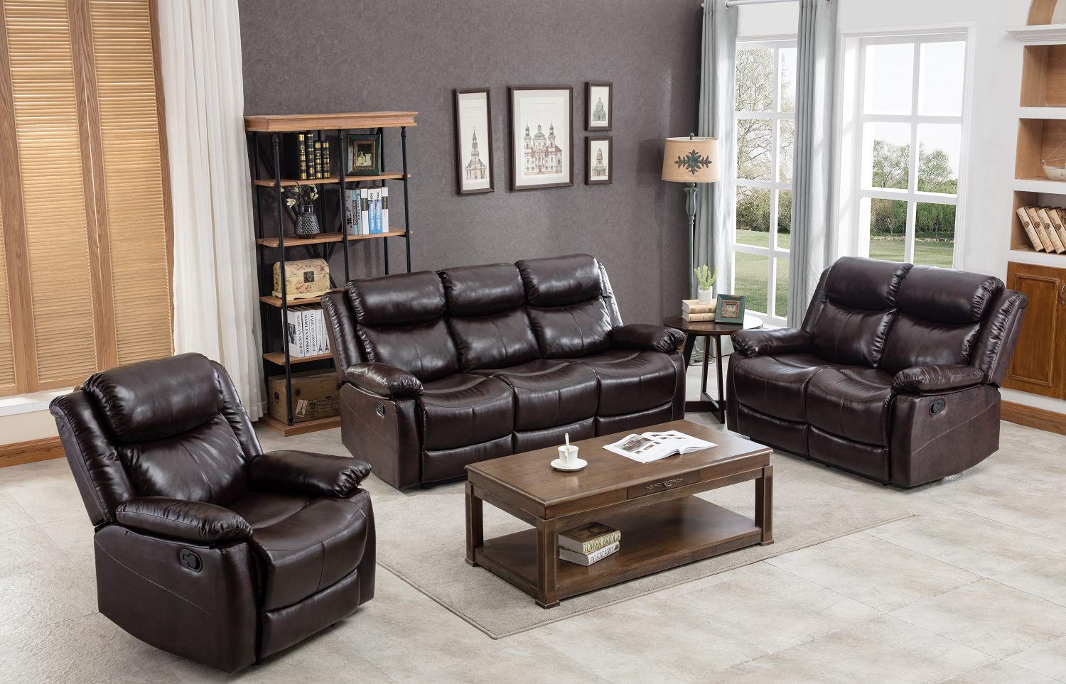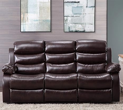 Harper Bright Designs Classic Bonded Leather Sectional Recliner Sofa 3 Seat Sofa Recliner