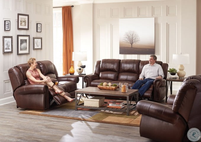 Messina Walnut Leather Lay Flat Power Reclining Sofa With Lumbar Support
