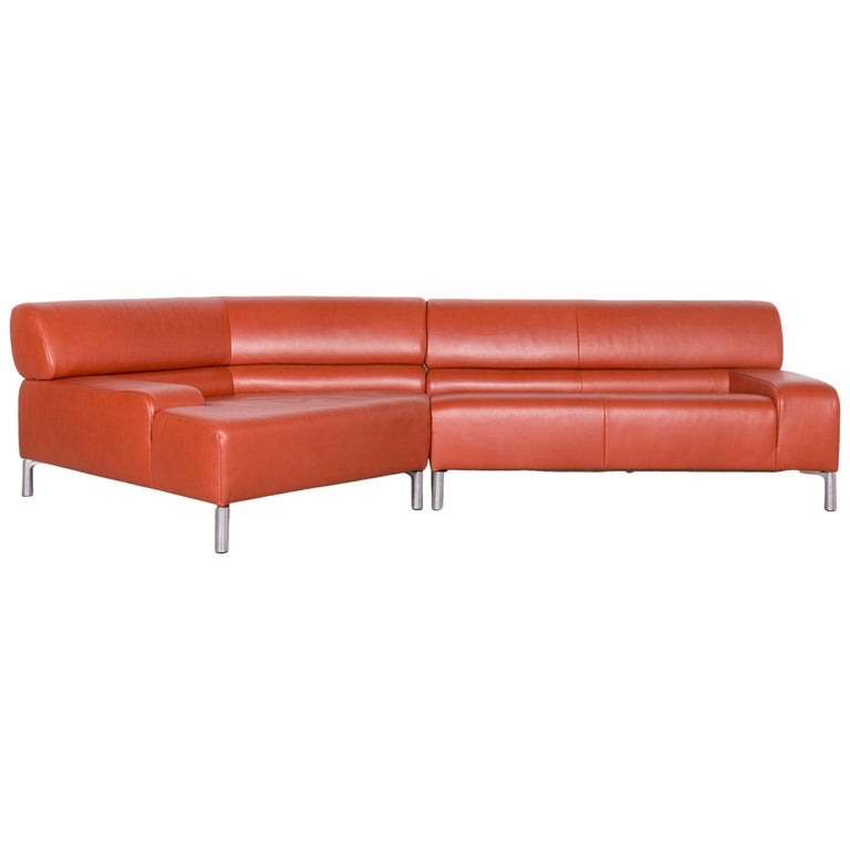 Koinor Designer Leather Corner Sofa Orange Genuine Leather