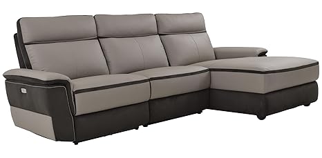 Homelegance Laertes Two Tone Power Reclining Sofa With Right Side Chaise Top Grain Leather Fabric Match Light Grey