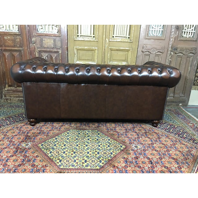Vintage Mid Century English Leather Chesterfield 3 Seat Sofa Tobacco Brown