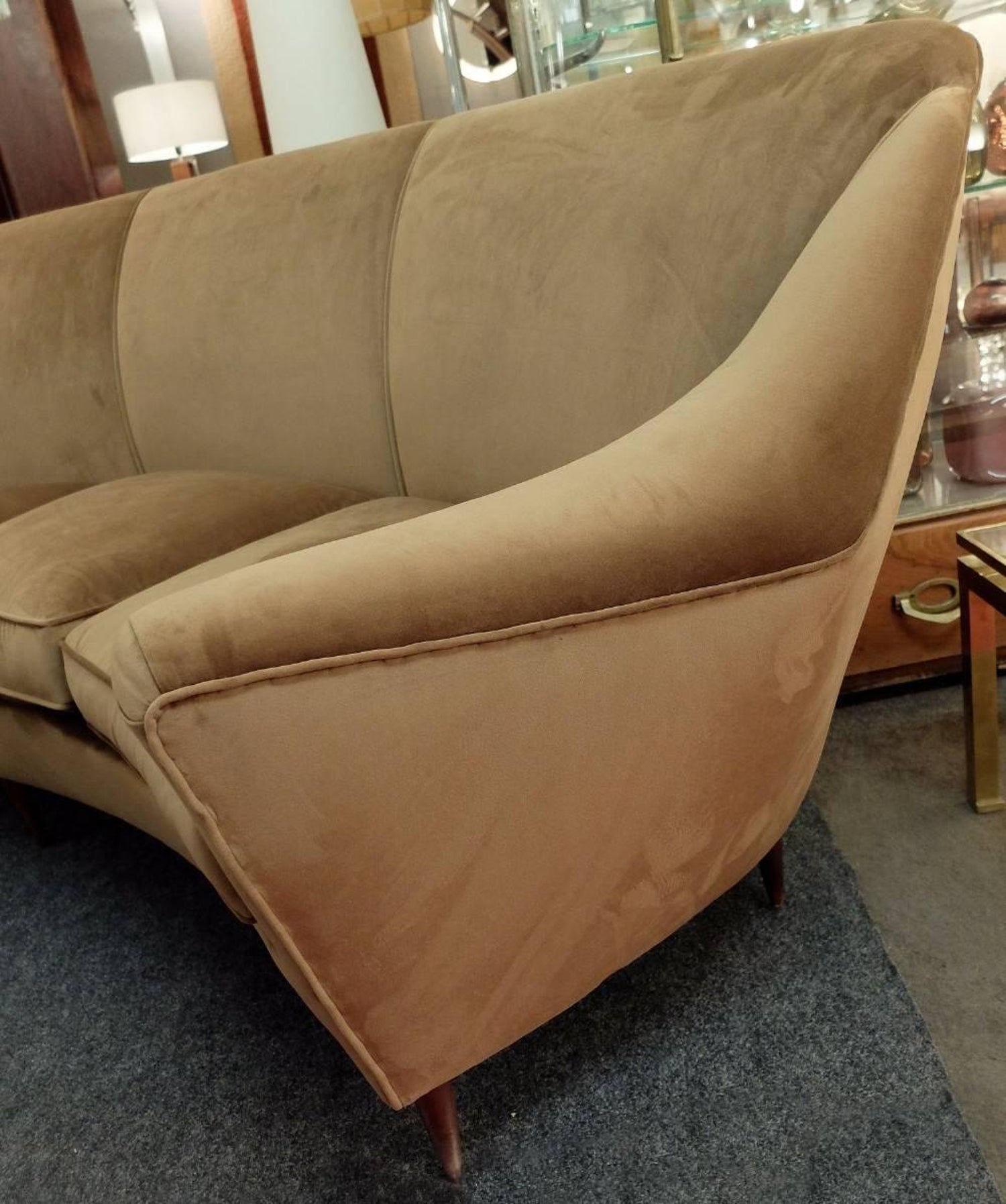 Large Curved Four Seat Italian Sofa Newly Upholstered In