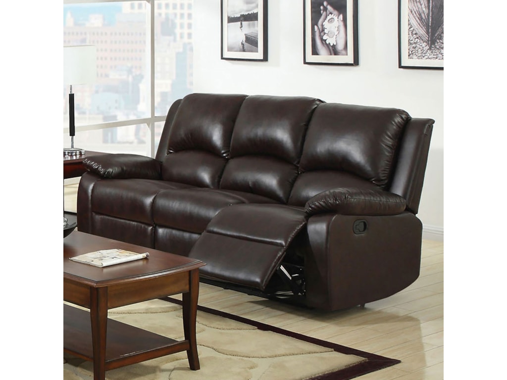 Coaster Boston Faux Leather Reclining Sofa In Brown