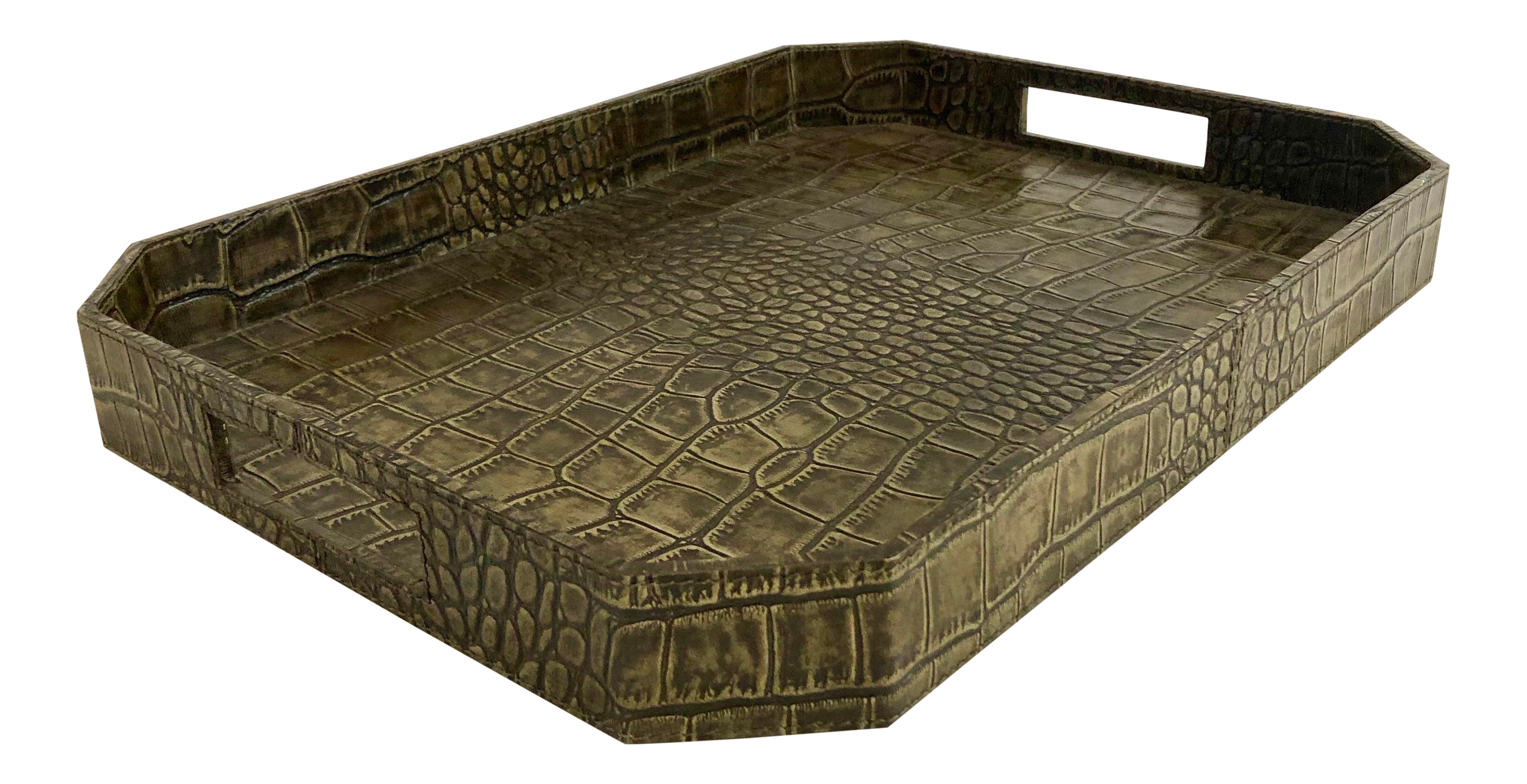 85 Off Society Social Society Social Dark Green Faux Crocodile Leather Console Table Tables