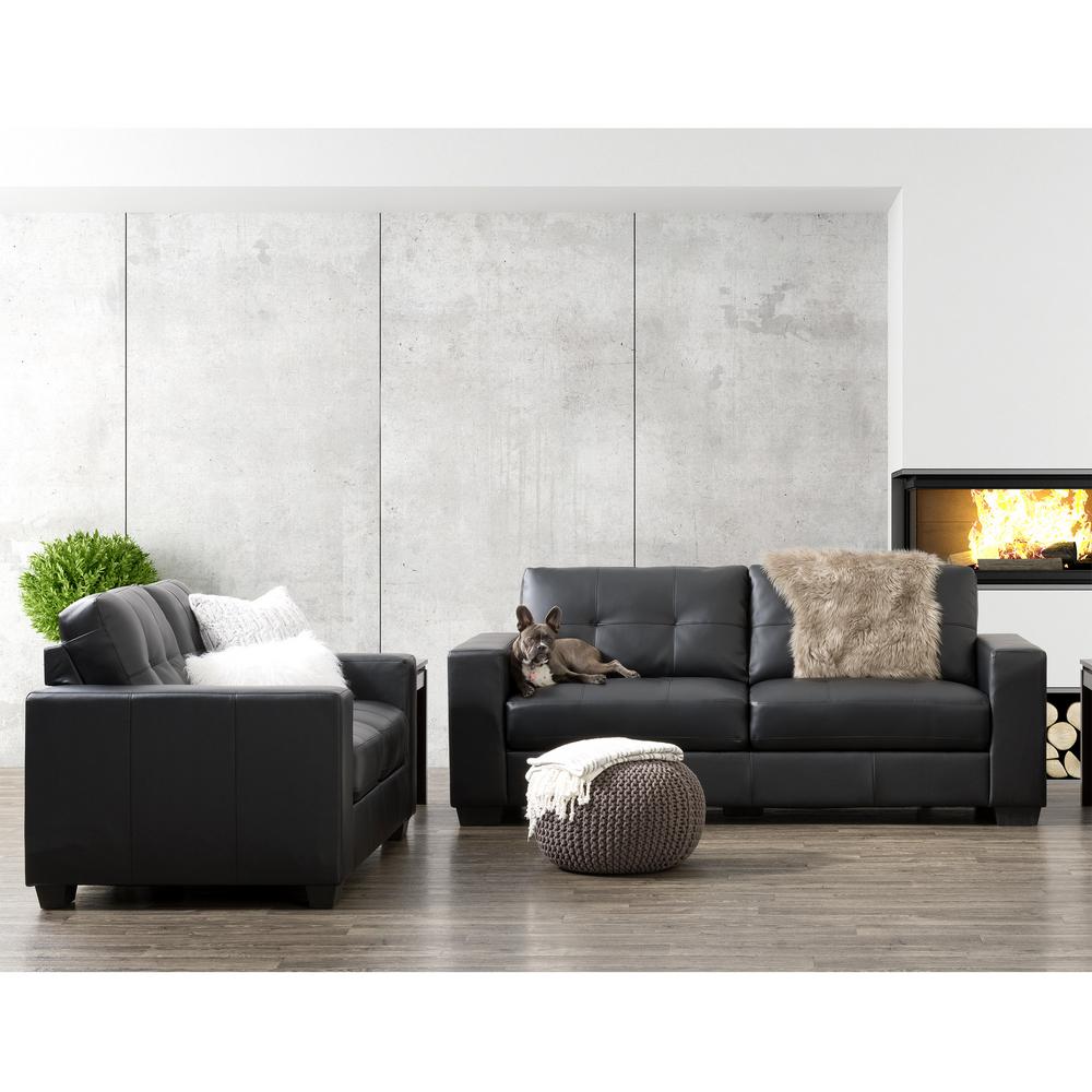 Corliving Club 2 Piece Tufted Black Bonded Leather Sofa Set