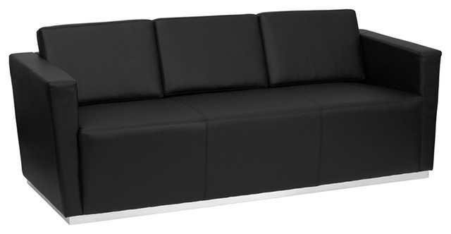 Offex Contemporary Black Leather Sofa With Stainless Steel Base