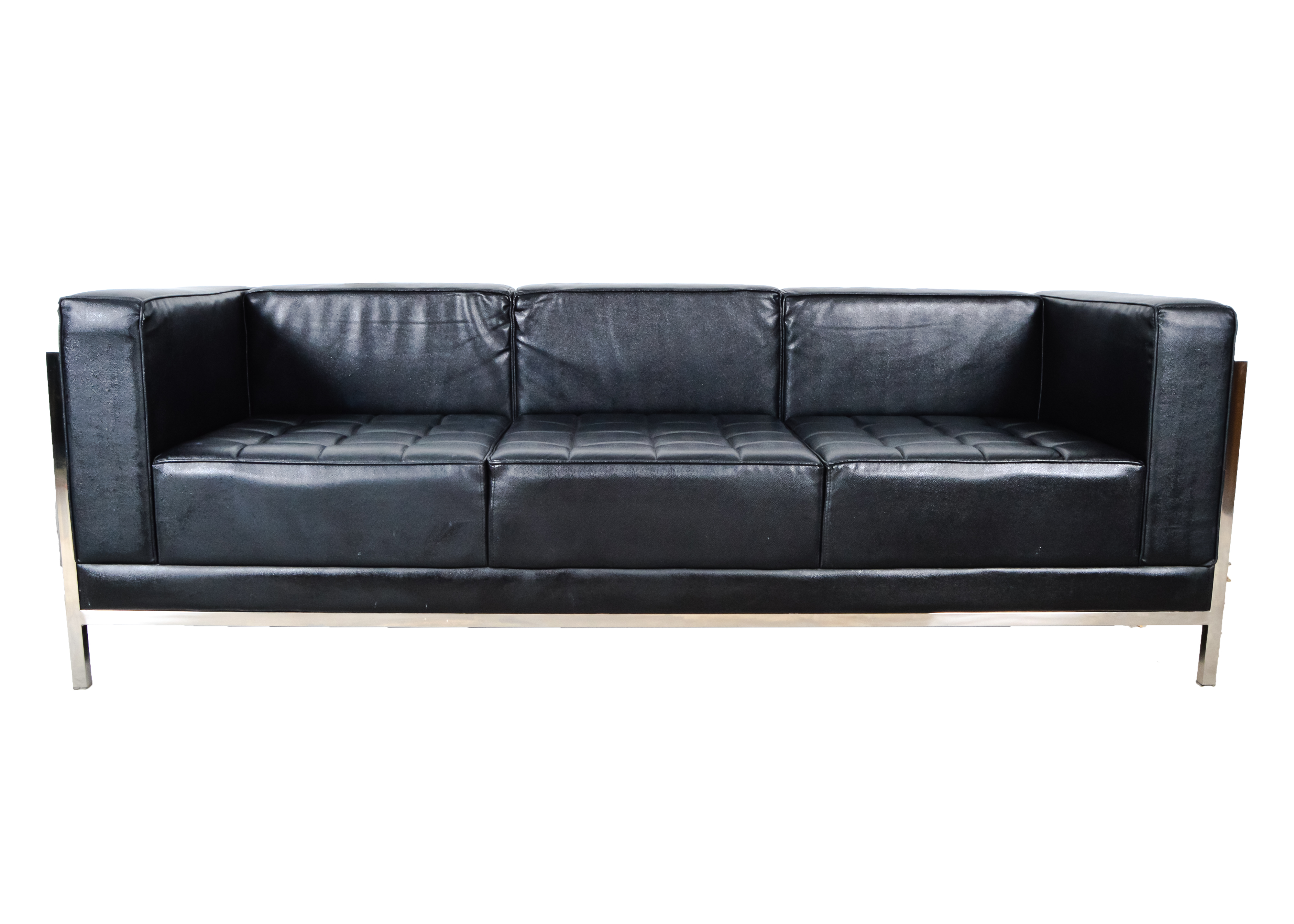 Mid Century Modern Style Low Back Black Quilted Sofa