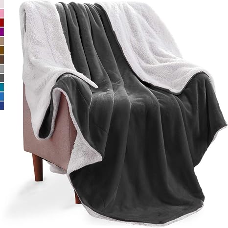 Kawahome Oversized Sherpa Blanket Extra Warm Thick Spring Winter Blanket For Couch Sofa Bed King Size 108 X 90 Inches Dark Grey