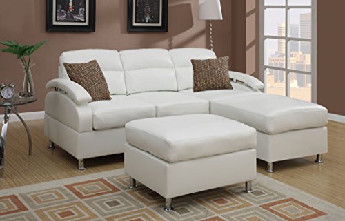 Poundex 2 Pieces Faux Leather Sectional Right Chaise Sofa White
