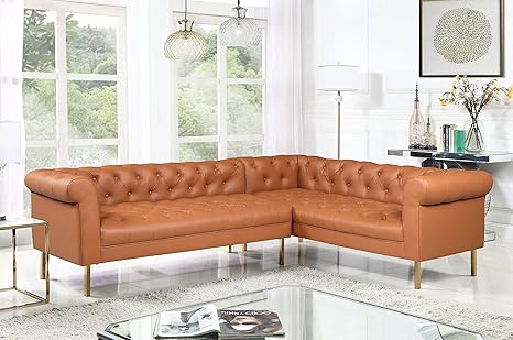 Divano Roma Furniture Mid Century Modern Tufted Real Leather Sectional Sofa Camel