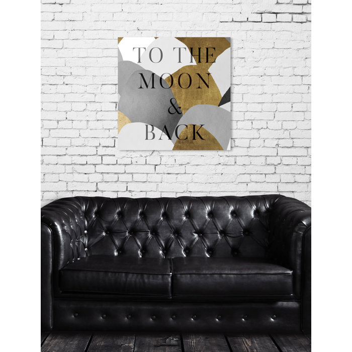 Oliver Gal To The Moon Gray And Gold Textual Art Print On Canvas