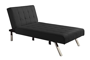 Dhp Emily Convertible Futon And Sofa Sleeper Modern Style With Tufted Cushion Arm Rests And Chrome Legs Quickly Converts Into A Bed Black Faux