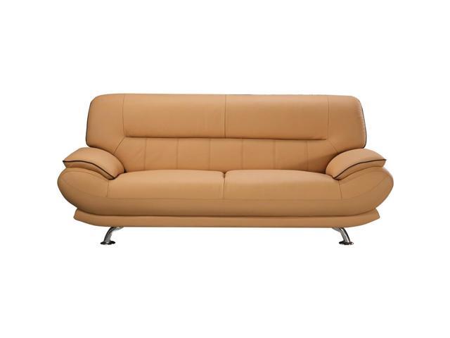 Leather Upholstered Wooden Sofa With Bustle Cushion Back And Pillow Top Armrest Yellow Newegg Com