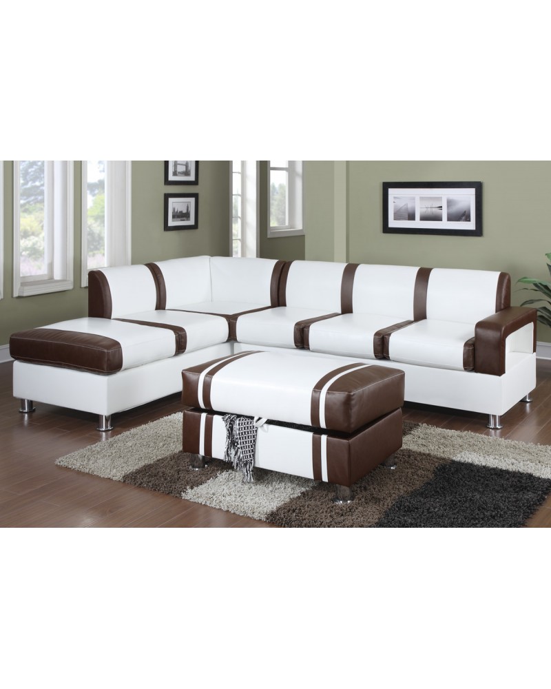 Ultra Modern Two Tone Faux Leather Sectional Sofa With