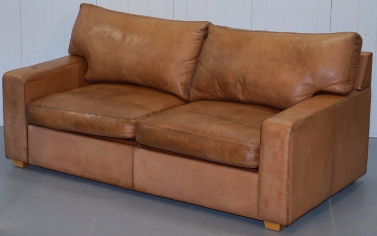 Collin And Hayes Aged Brown Leather Sofa Bed With Feather
