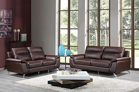 Cortesi Home Chicago Genuine Leather Sofa Loveseat Set Brown