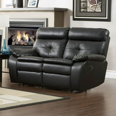Homelegance Wallace Leather Double Reclining Loveseat In Black