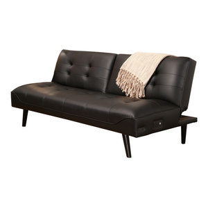 Amazon Com Home Source Black Faux Leather Tufted Sofa Bed