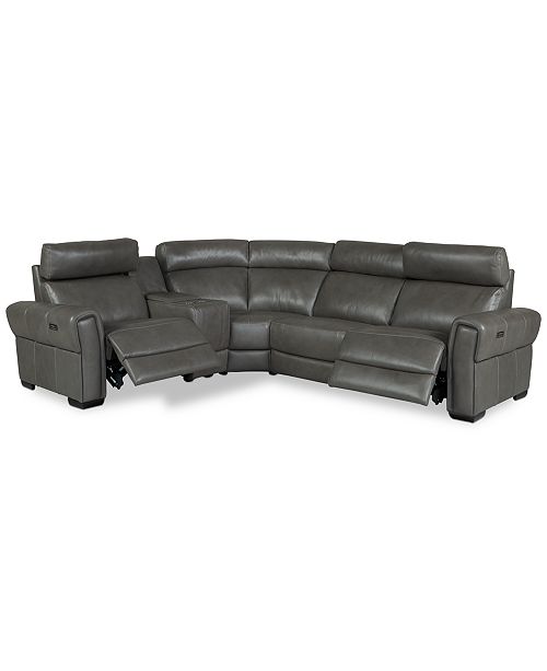 Macy S Nicolo 5 Piece Slate Leather Reclining Sectional Sofa