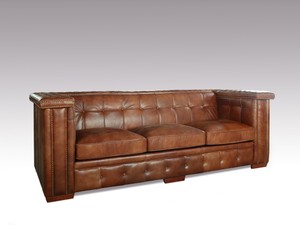 Brown Color Home Furniture Genuine Leather Sofa With Button Design 619