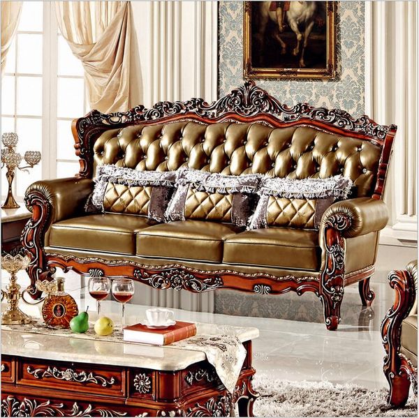 Hot Selling New Arrival High Quality European Antique Living Room Sofa Furniture Genuine Leather Sofa Set Pfy4001 Canada 2019 From Tengtank Cad