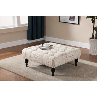 Baxton Studio Keswick Beige Script Print Modern Tufted Ottoman
