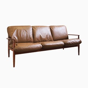 Mid Century Modern Danish Teak Leather Sofa By Grete Jalk For Cado