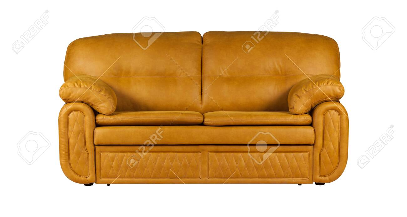 Orange Two Seat Leather Sofa Isolated On White Background
