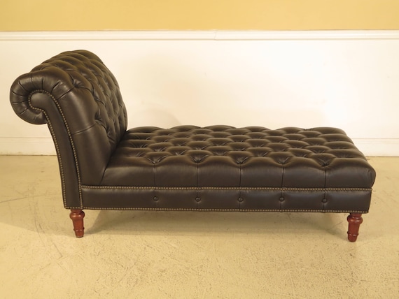 44180ec Henredon Tufted Dark Brown Leather Chaise Lounge