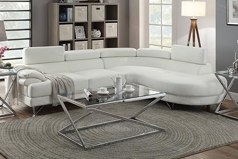 2pcs White Bonded Faux Leather Sectional Sofa Set White Color