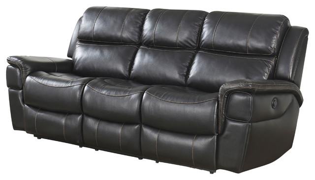 Delangelo Power Sofa In Black Leather Like Upholstery By Coaster 602301p