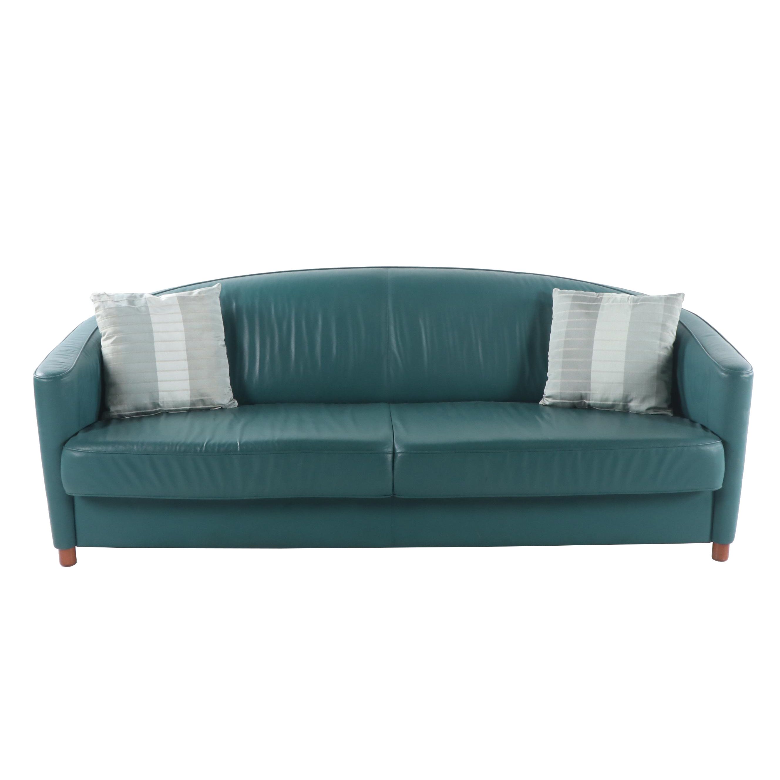 Teal Leather Sofa Living Room Midcentury With Mid Century