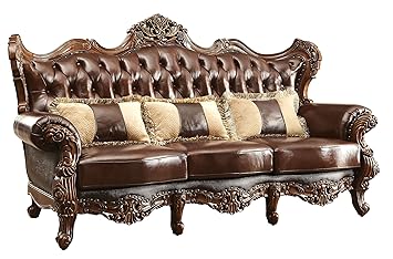 Faux Leather Sofa With Soft Impressions Throw Pillows 21st Century