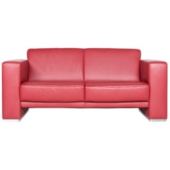 Natuzzi Designer Leather Sofa Red Pink Real Leather Two Seat