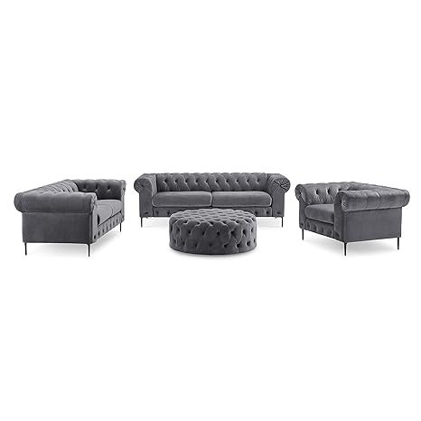 Amazon Com Velvet Rolled Arm Sofa And Ottoman Living Room