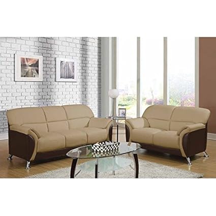 Global Furniture U2033 Modern Design Cappuccino Bonded Leather Sofa Set 2 Pcs