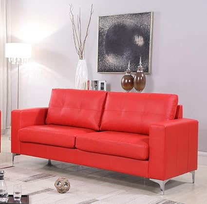 Amazon Com Gtu Furniture Red Contemporary Leather Sofa With