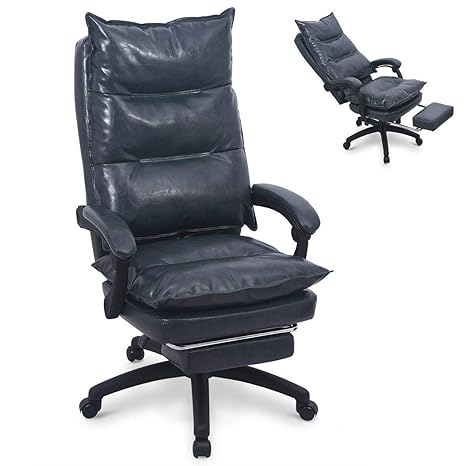 Pu Leather Memory Foam Office Chair Ergonomic High Back Desk Chair With Retractable Footrest Adjustable Angle Recline Lock System Thick Back And Seat