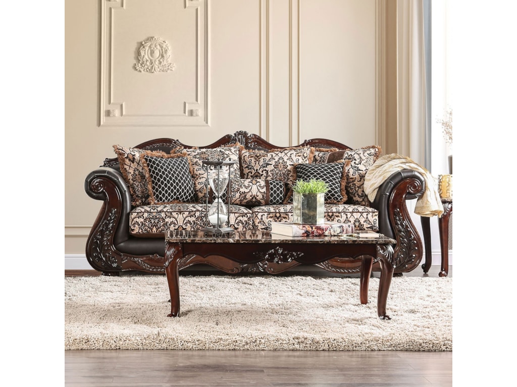 Homey Design Hd 3280 Dark Chocolate Gold Fabric Faux Leather