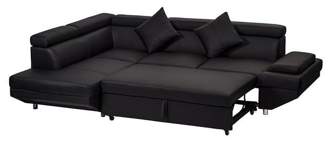 2 Piece Corner Sofa Bed Faux Leather Over Wooden Frame Contemporary Style