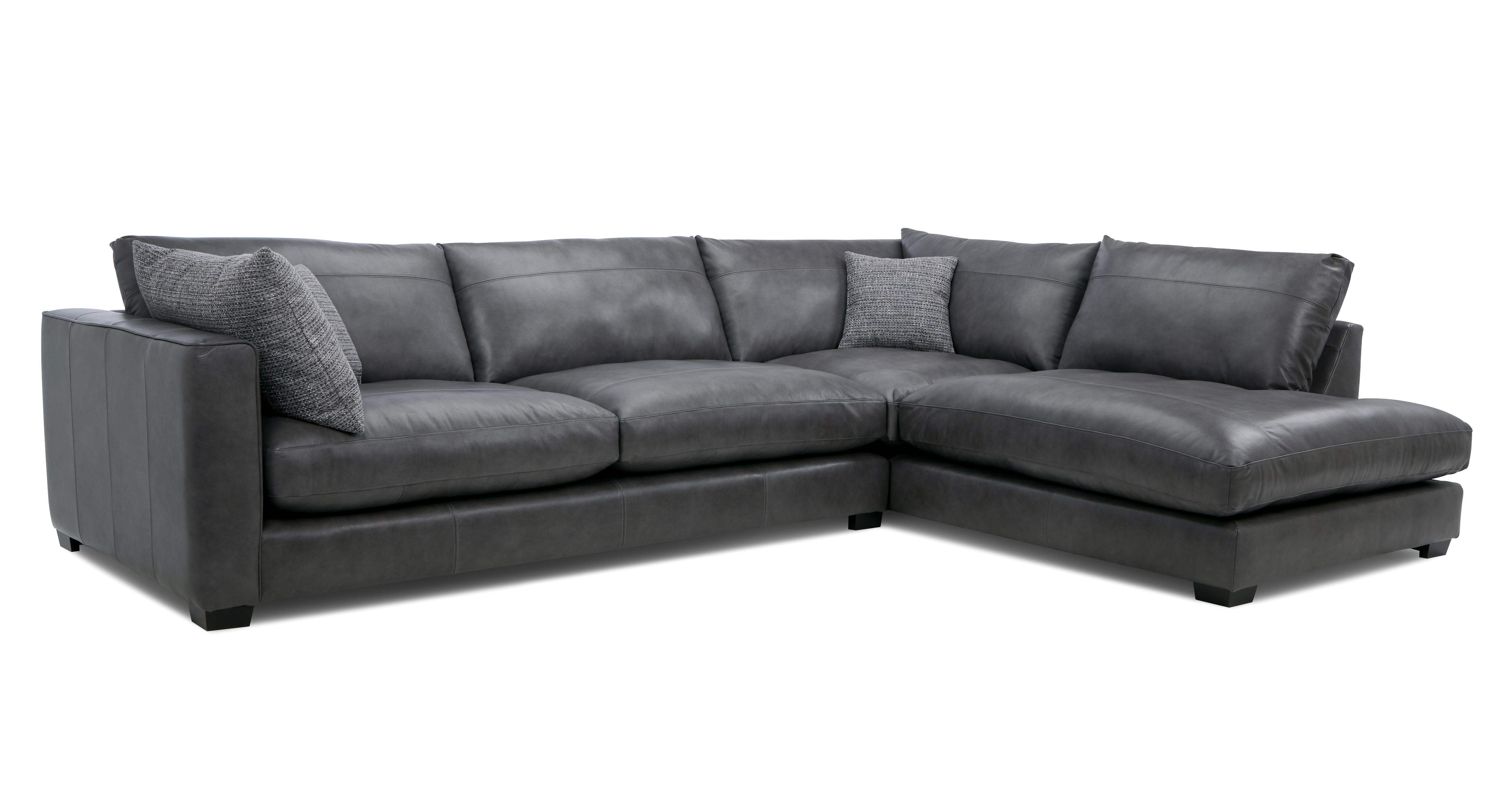 Boston Grey Leather Sectional Corner Sofa Right Hand Facing
