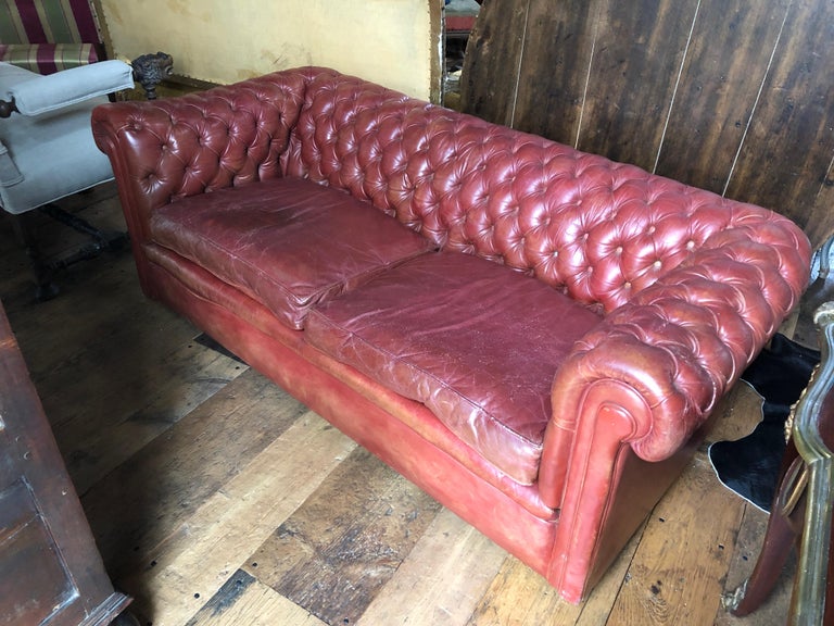 Incredibly Handsome Distressed Tufted English Leather Chesterfield Sofa