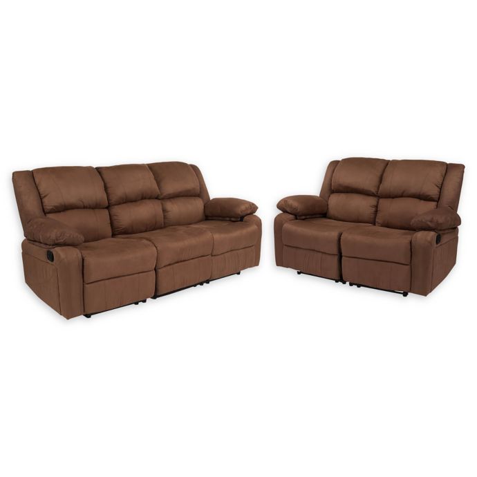 Harmony Series Flash Furniture Chocolate Brown Microfiber Reclining Sofa Set Walmart Com
