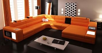 Amazon Com Modern Sectional Sofa In Orange Italian Leather