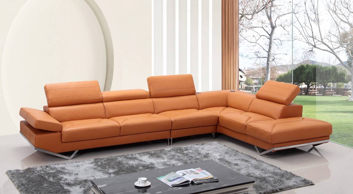 5022 Orange Top Grain Italian Leather Living Room Sectional Sofa