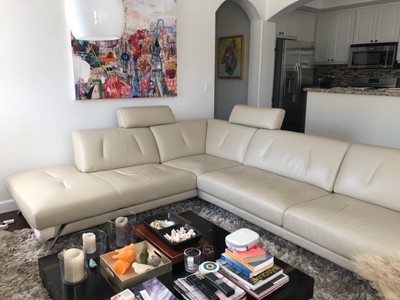 Sectional Script Leather Sofa Light Taupe Roche Bobois Ebay