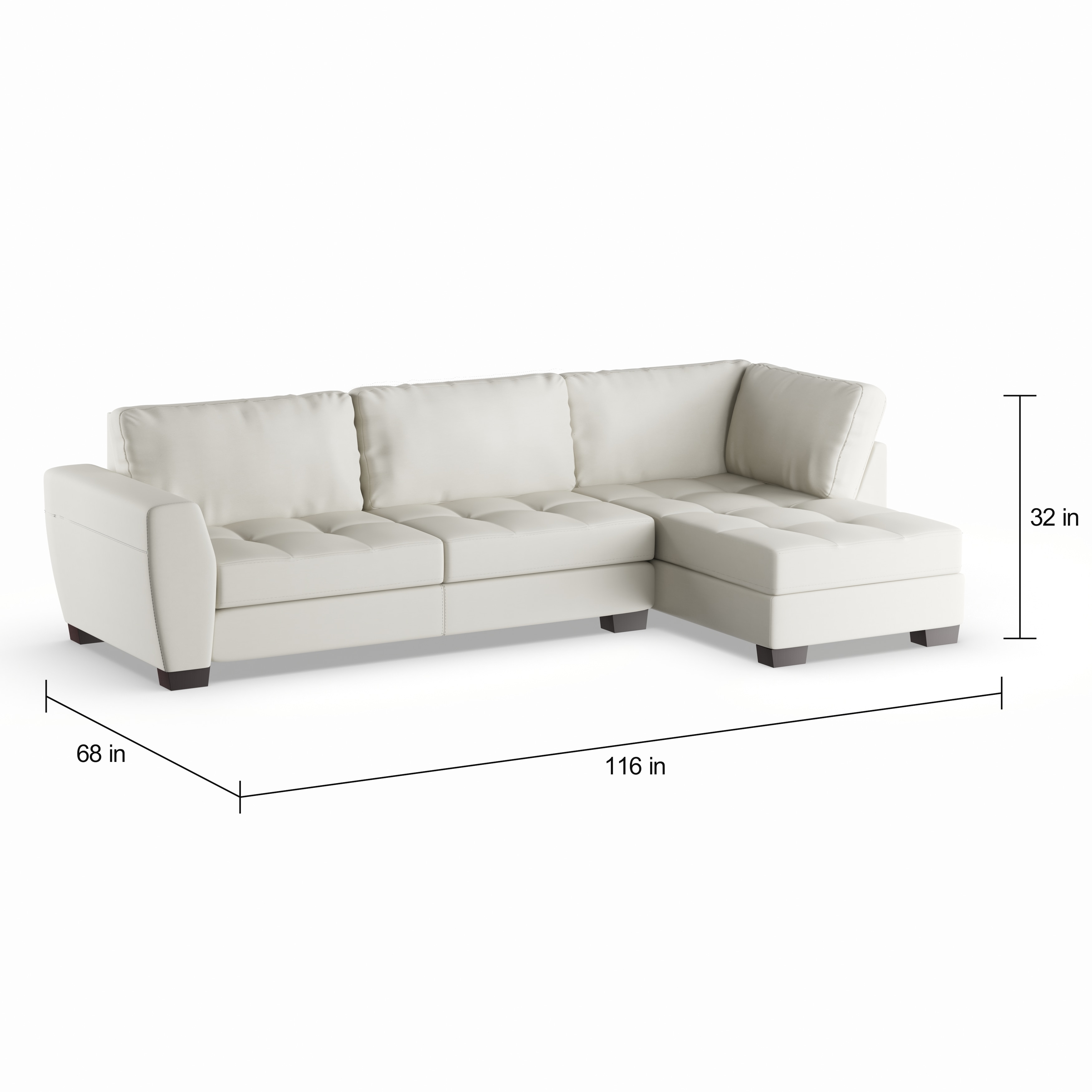 Orland White Leather Modern Sectional Sofa Set With Right Facing Chaise
