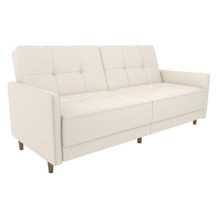 Amazon Com White Faux Leather Coil Convertible Futon Couch