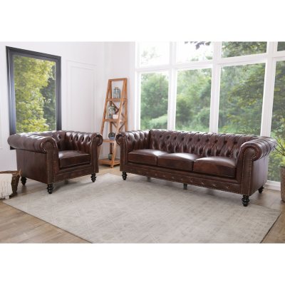 Top Grain Leather Sofa Loveseat Armchair Set Livingroom Furniture Nailhead Brown
