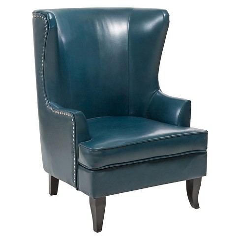Canterbury High Back Bonded Leather Wing Chair Teal Christopher Knight Home